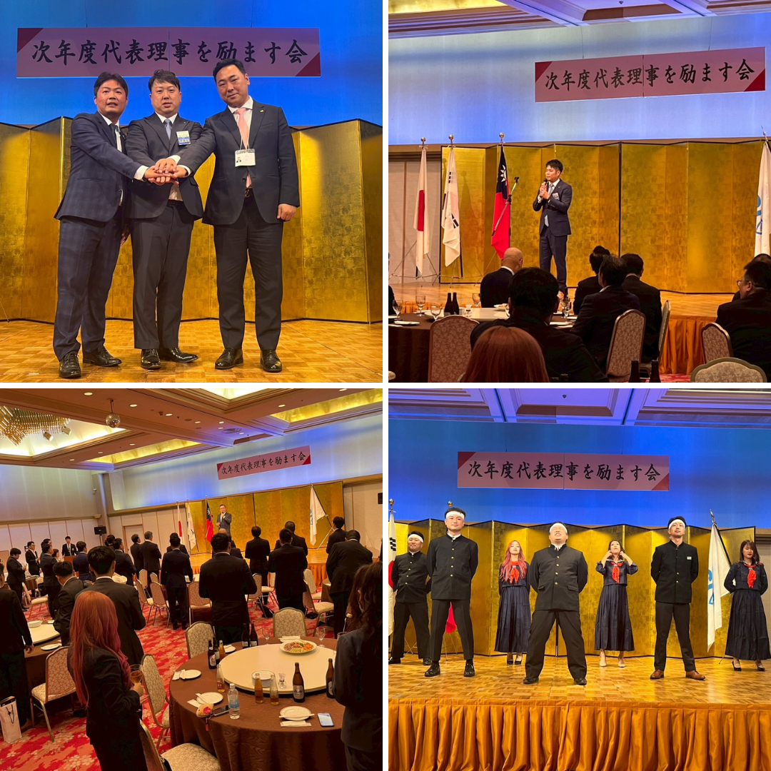 総会終了後は、「次年度代表理事を励ます会」と題し、加治宏規君からメンバーに向け、熱いメッセージが送られ、シニアの先輩方に次年度以降も今までと変わらぬご支援とご協力を頂くことをお願い申し上げました。さらに姉妹JCである、台湾 中正國際青年商會のメンバー、韓国 西仁川青年会議所メンバーにもご臨席頂き、永遠の友情を交わしました。