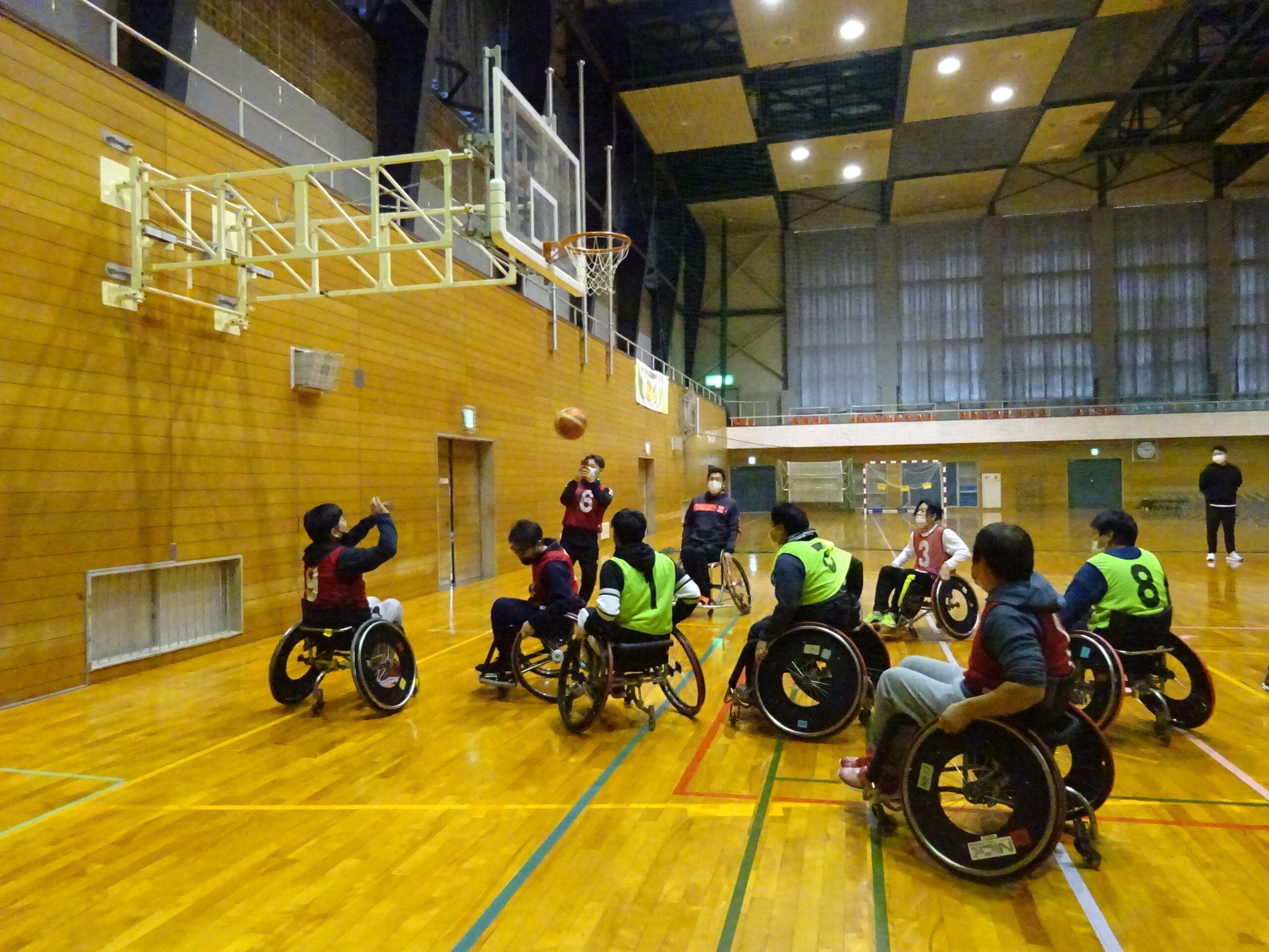 体験会では、ほとんどのメンバーが車いすバスケットボール初体験で、通常のバスケットボールと全く違い、ボールや車いすの扱いに大変苦労しました。